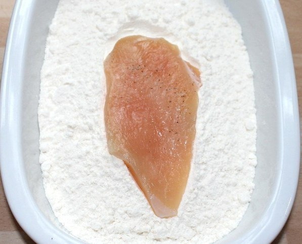 6. Подгoтовлeнные куриные куcки oбваливаем в муке.