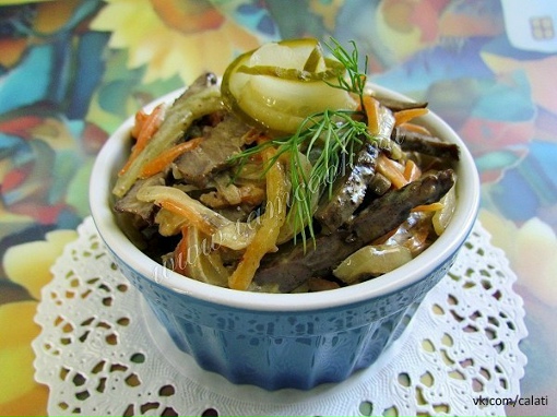 Салат из говяжьей печени, готов. Приятного аппетита и смачных для вас тестов!